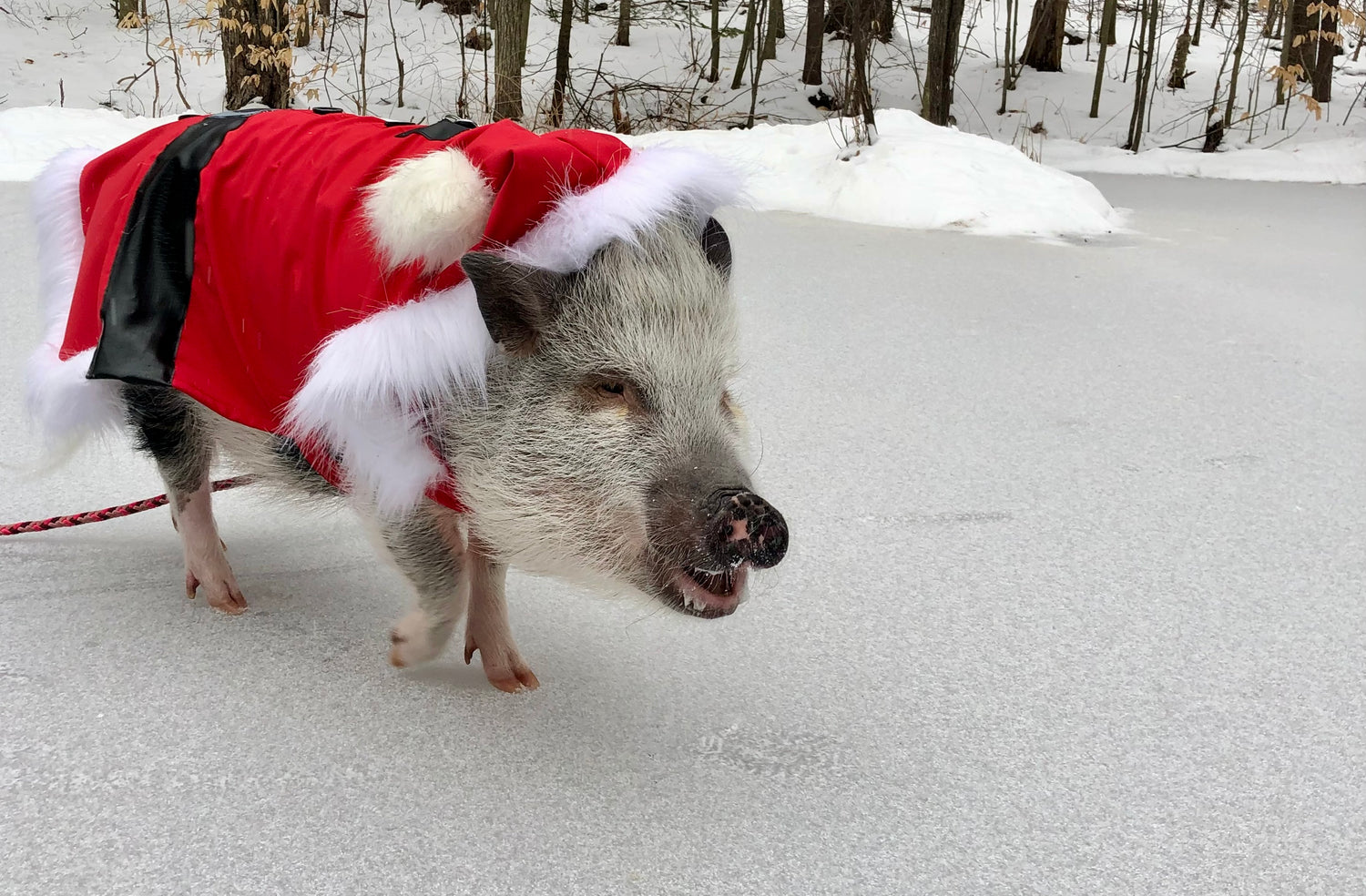 Trouvez des vêtements conçus à la main spécifiquement pour l'anatomie des cochons.
