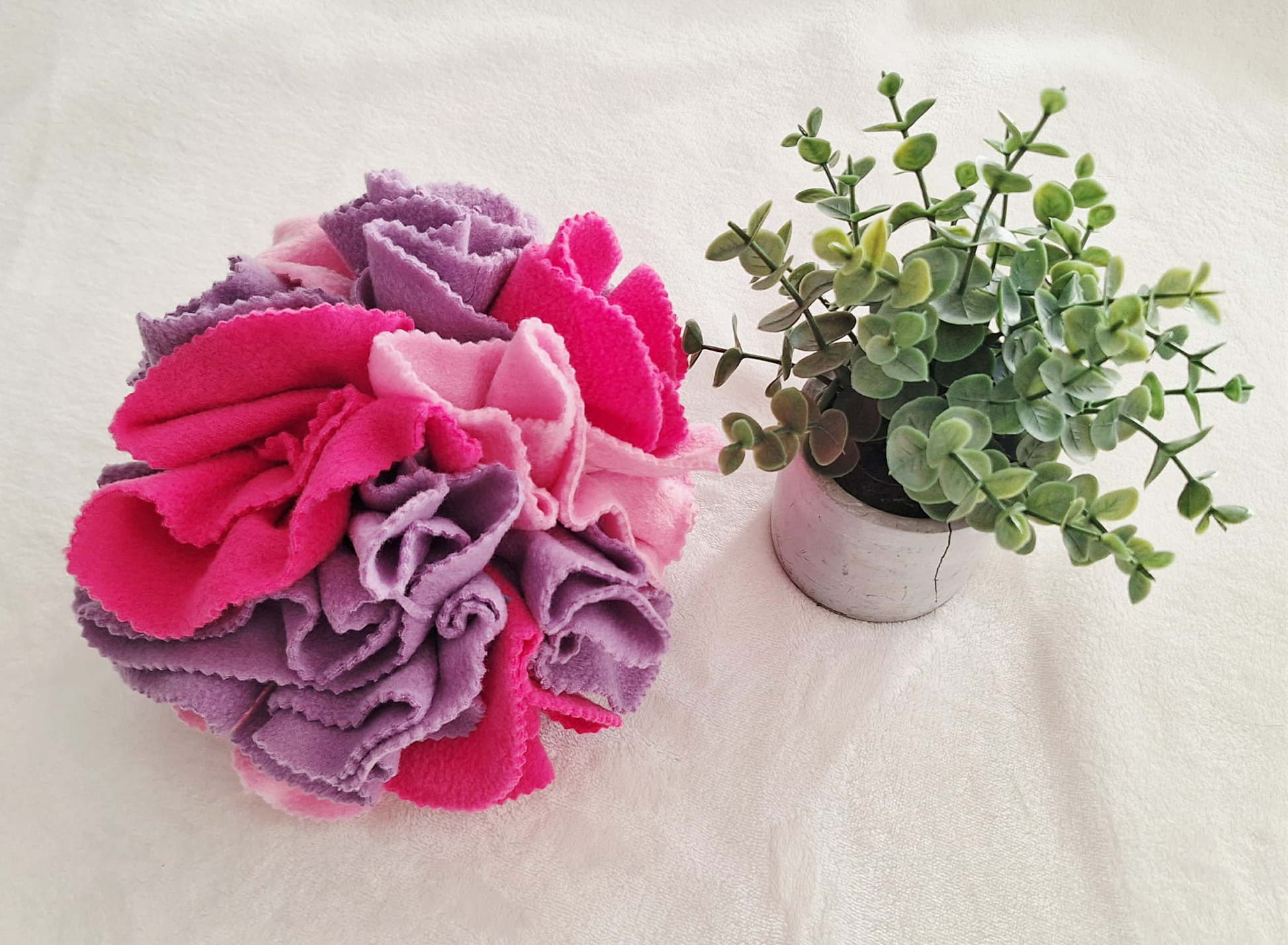 Balle de fouissage faite à la main spécialement pour vos cochons. Les replis de feutre permettent de bien cacher des gâteries. Nous vous conseillons de combiner votre achat avec ces gâteries; cassez-les et cachez-les dans les replis de la balle!