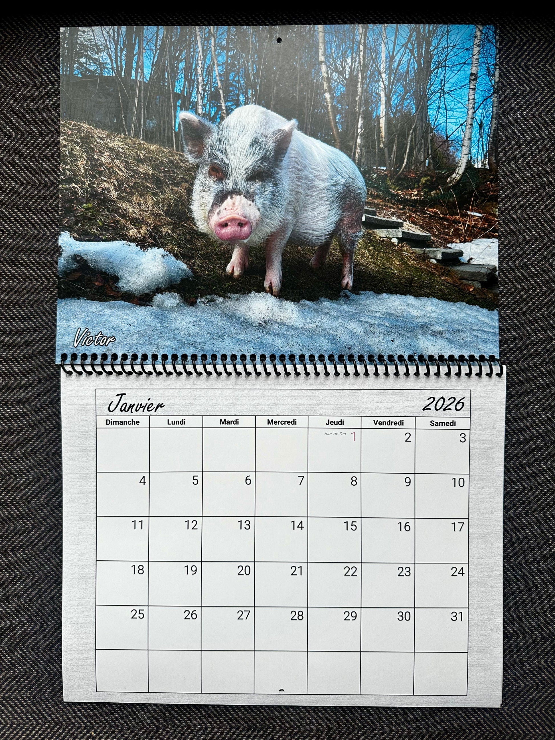 Amoureux des cochons, agrémentez votre année 2026 grâce à ce calendrier mural!