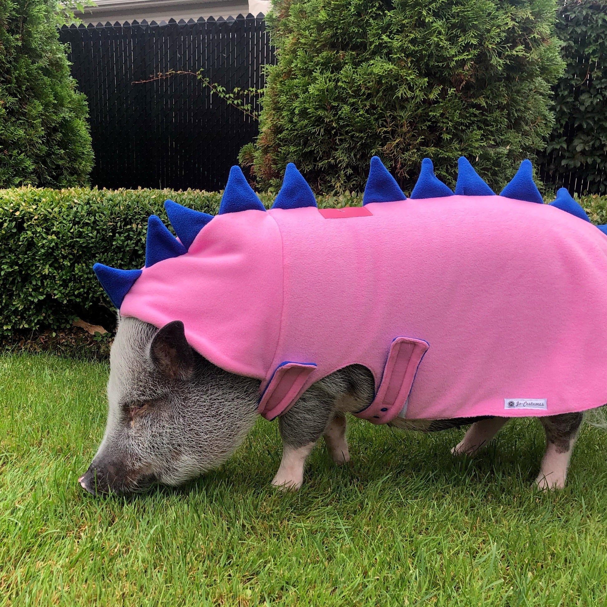 Les polars dinosaure sont parfaits comme costume d'Halloween, mais également comme manteaux d'automne et d'hiver puisqu'ils sont faits de deux épaisseurs de polar les rendant très chauds! Ils sont conçus à la main spécialement pour l'anatomie du cochon. Les ganses ajustables sont à boutons-pression (snaps) permettant un bon ajustement selon la taille de votre cochon. Les manteaux ont une ouverture située sur le dos, au niveau du cou, permettant d'être porté avec un ensemble harnais et laisse.